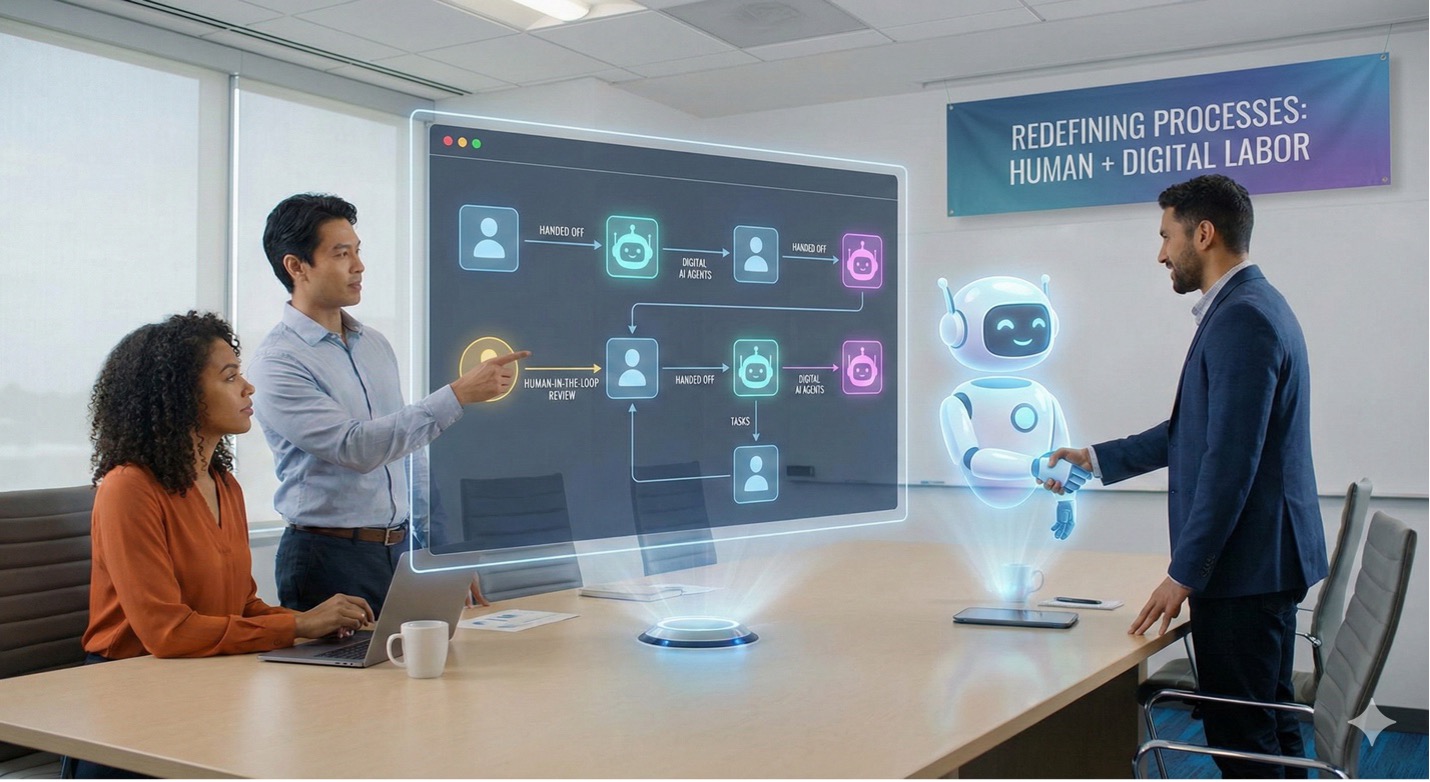 As "digital labor" (agents) began taking on end-to-end tasks, organizations had to fundamentally rethink how work gets done. The challenge wasn't the technology; it was the organizational change management.